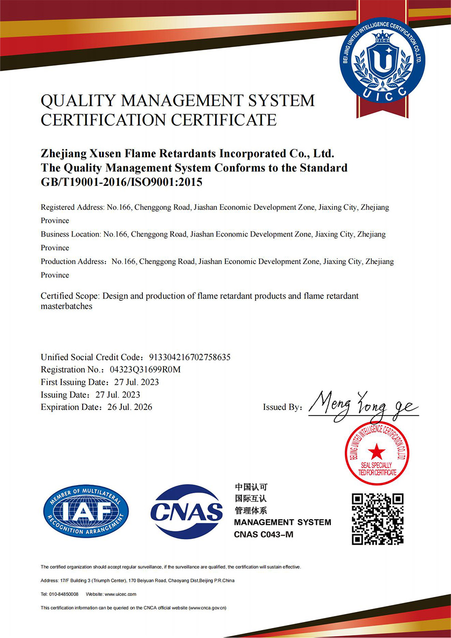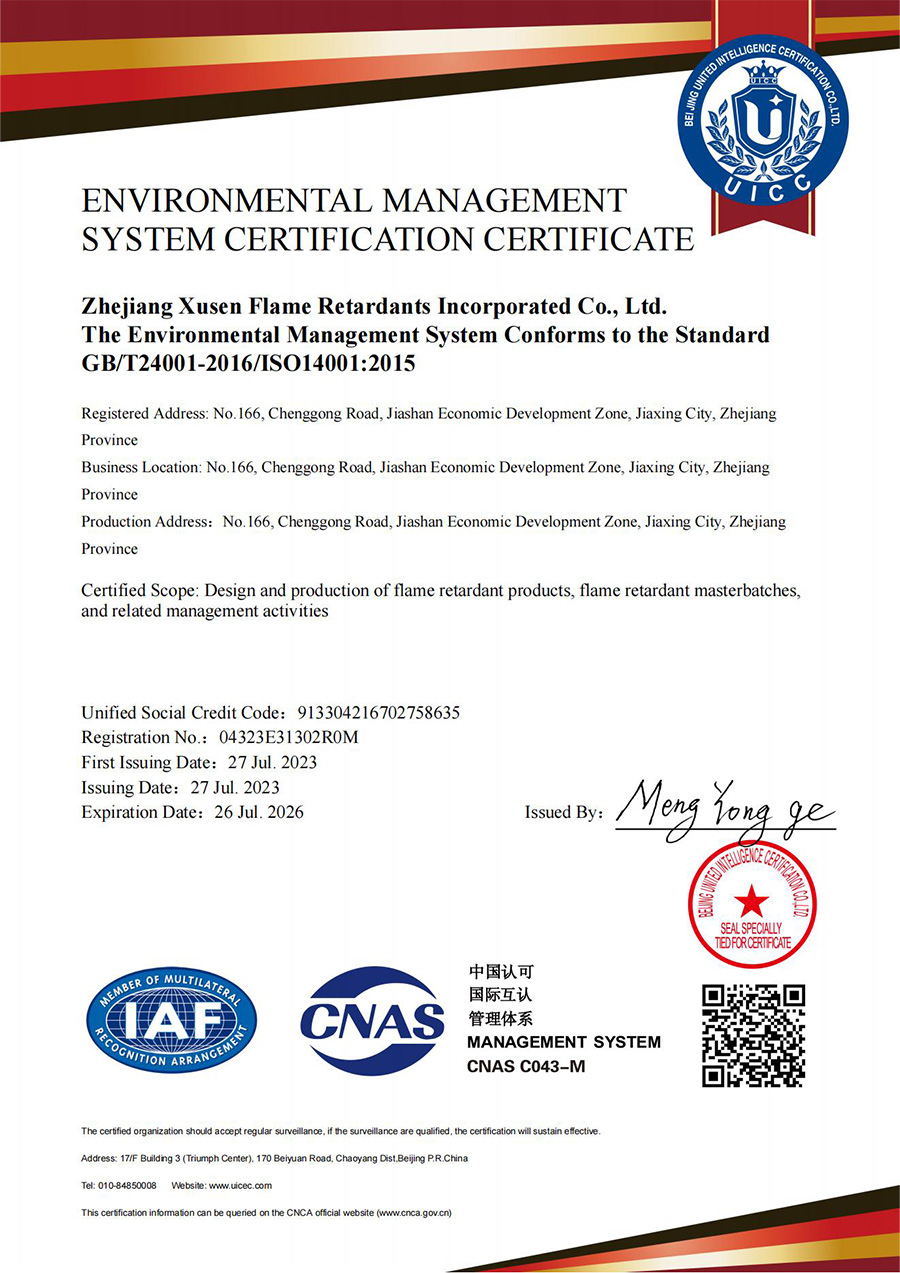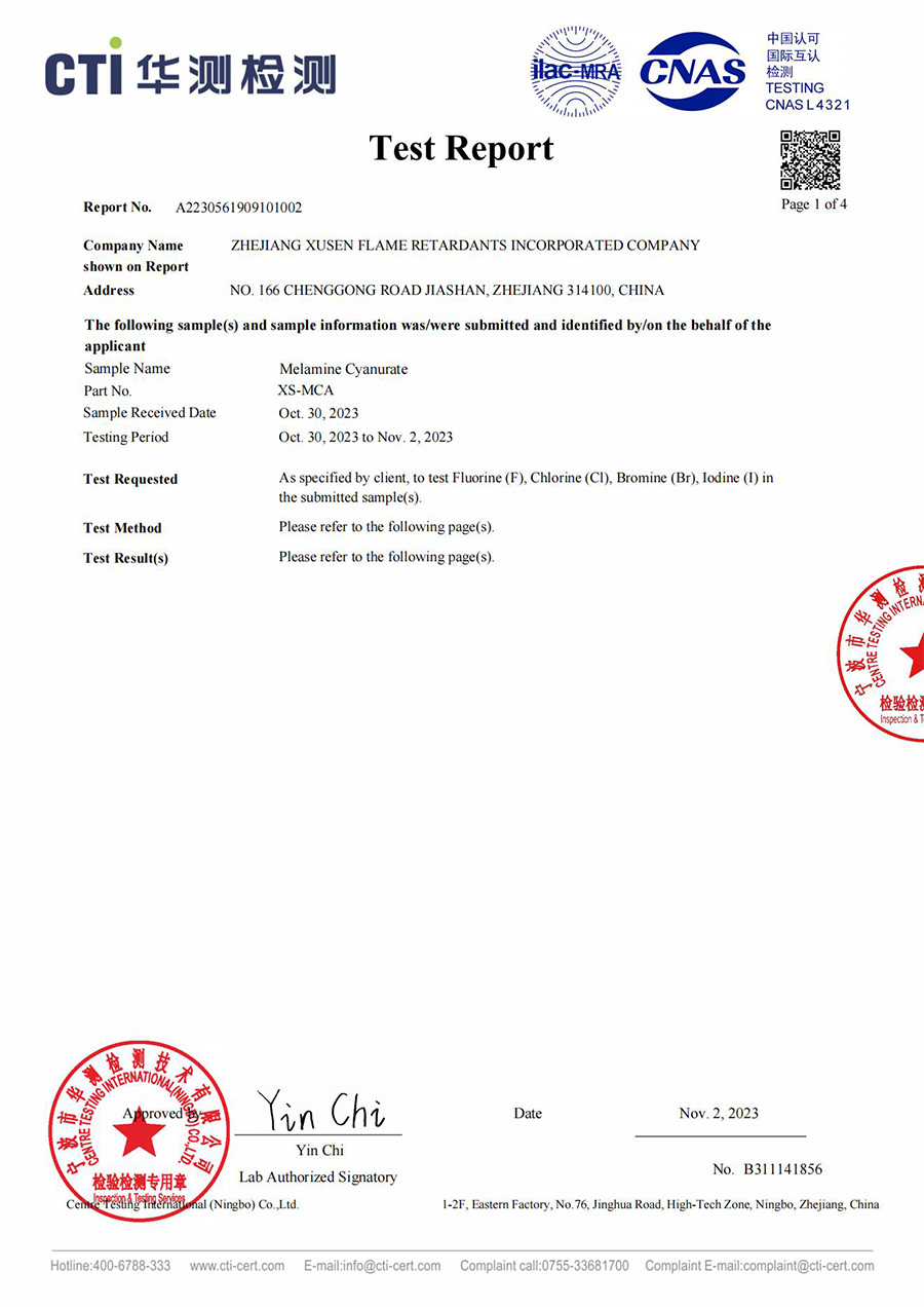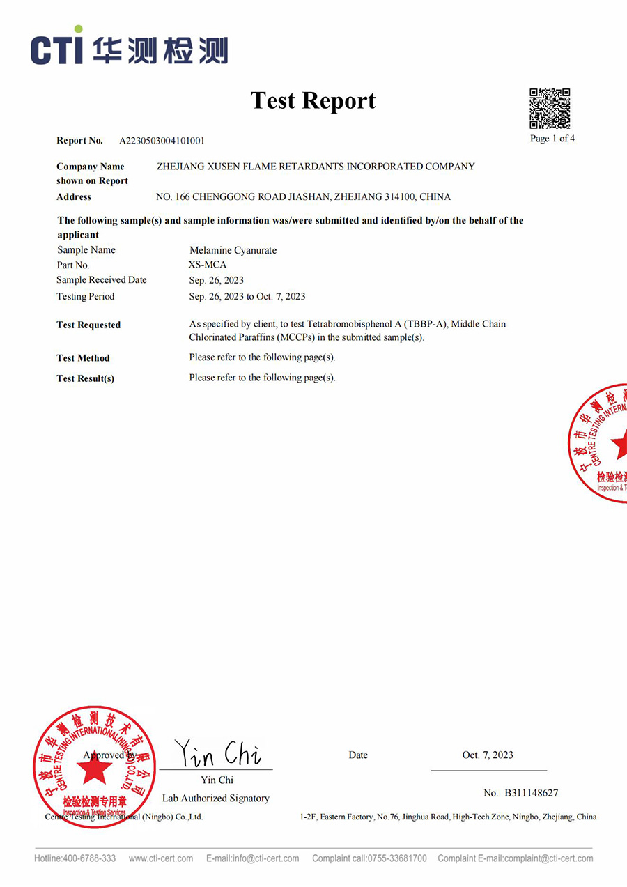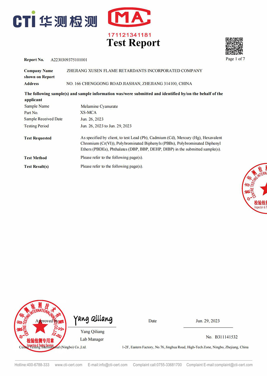 مهار کننده شعله برای گزارش تست پلی الیفین ROHS